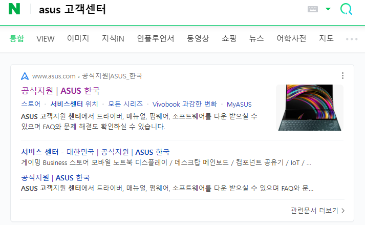 1. ASUS 고객센터에 가서 드라이버를 다운로드 한다.