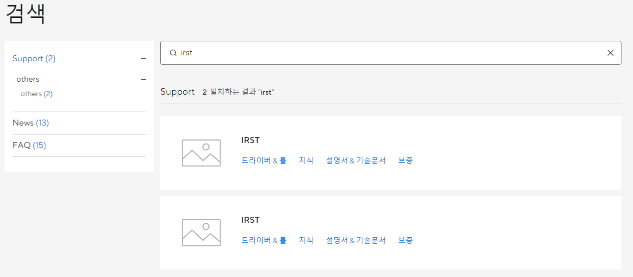 2. 드라이버 명칭이 IRST입니다. IRST를 검색합니다.