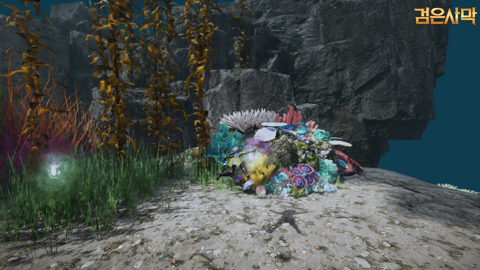 용왕이 있는 궁궐을 바라 볼 때 서쪽편에 있는 서문으로 나가셔야 이무기를 찾을 수 있고요. 서문을 나가자 마자 잠수로 수영해서 왼쪽편 산호초 부근을 뒤지다 보면 이무기 의뢰 완료 표시가 뜹니다. 정확한 위치는 아래 사진을 참조해 주세요.