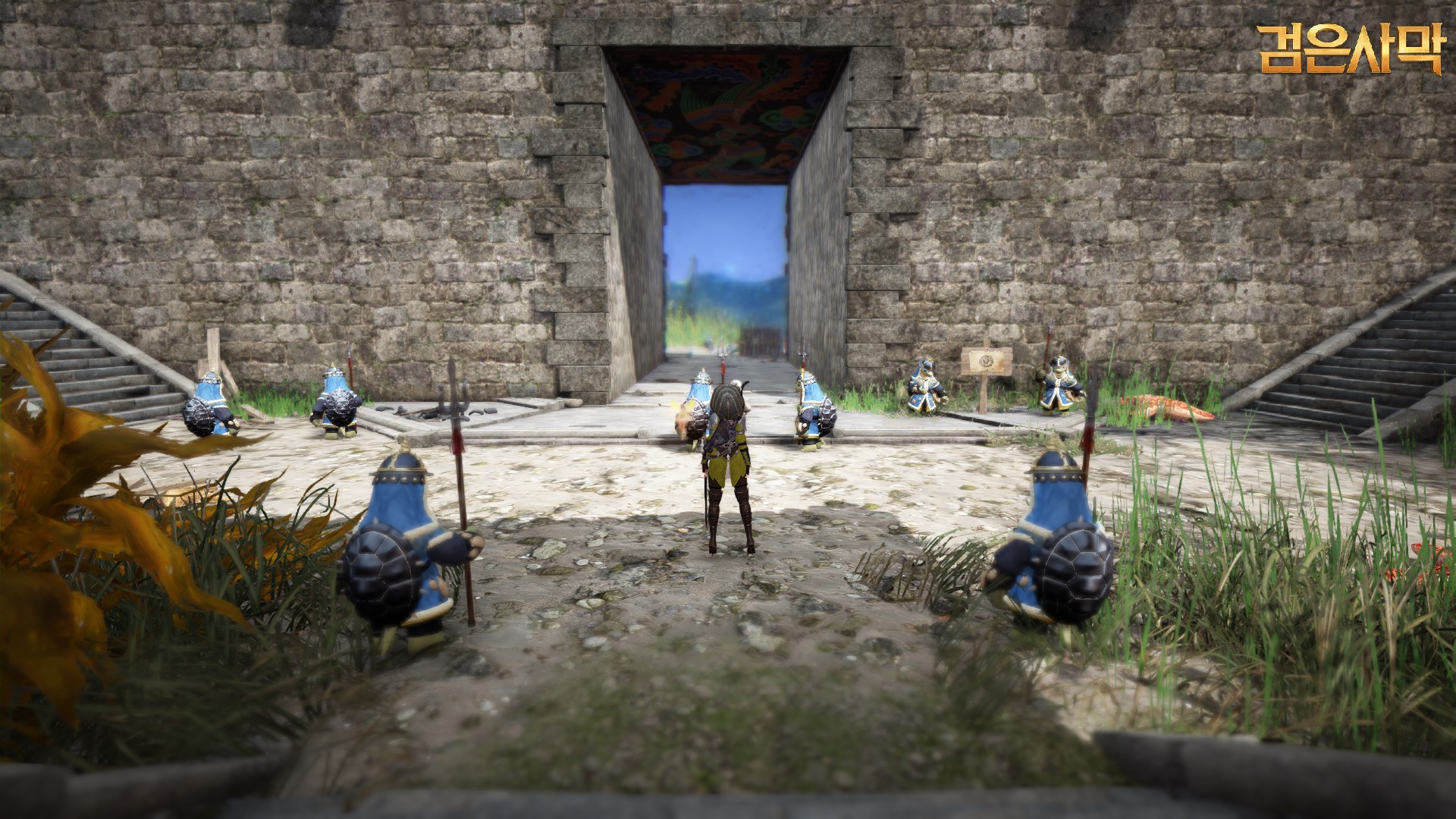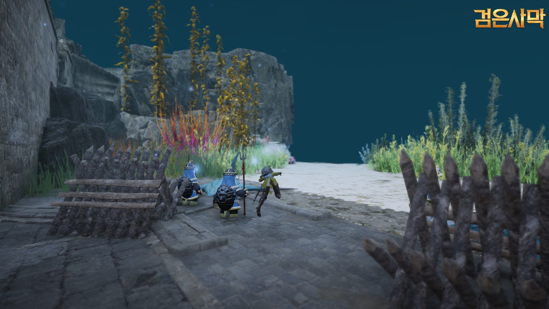 이 때 주의해야 할 사항이 있는데 수문 밖에서는 잠수 상태이기 때문에 숨이 찹니다. 숨이 다 차면 보글보글 거리면 수면 위로 강제 이동하게 되는데요. 수면위로 올라오면 망망대해이고 다시 수궁으로 돌아가려고 하면 너무 멀어서 다시 숨이 차는 상태가 반복되고 수면위로 떠 올라 접근 자체가 불가능합니다. 망망대해를 헤맬 수 밖에 없는 억까 상태에 놓이는데요. 이 때는 최대한 잠수를 한 뒤에 ESC를 누르고 캐릭터 선택으로 빠집니다. 그러면 그 동안 숨이 회복 되는데요 다시 재접해서 수궁으로 가까이 가고 또 캐릭터 선택으로 빠졌다가 숨을 회복하고 접속하는 것을 반복하여 수궁으로 이동하는 방법이 있습니다.