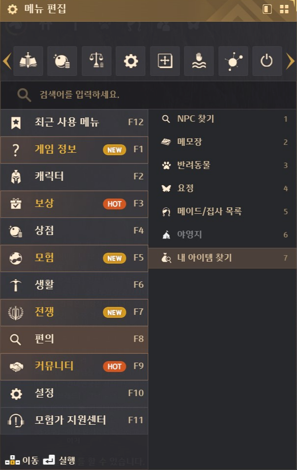 자기가 보유한 아이템을 쉽게 찾을 수 없다면 가문 및 전체 캐릭터 대상으로 검색해서 가져오는 방법이 있습니다. [ESC - F8. 편의 - 7. 내 아이템 찾기]에서 검색을하면 위치를 파악 할 수 있고 메이드를 통해 현재 캐릭터로 가져 올 수 있습니다.