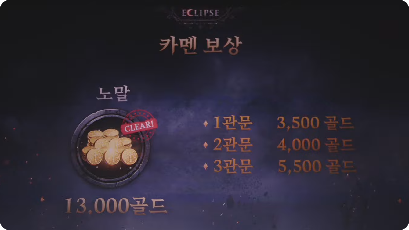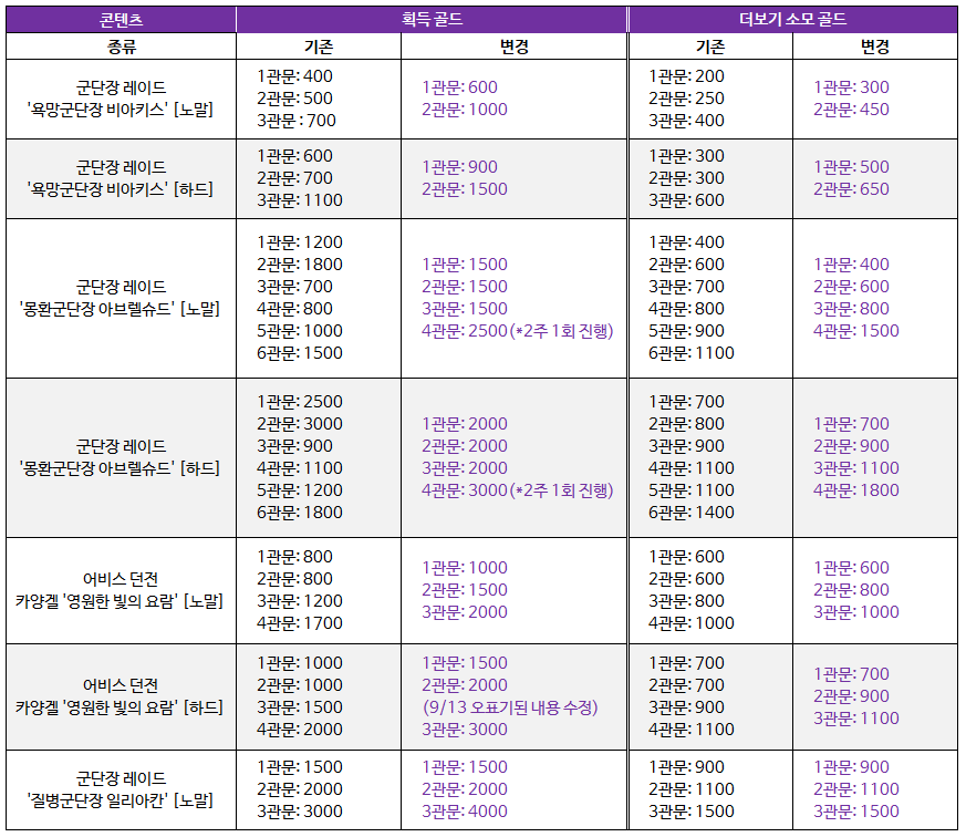 아브렐슈드(노말)에서는 총 4500 + 2500 (4관문 격주) 골드를 보상 받을 수 있습니다. 그 외 변경된 자세한 내용과 추가적인 내용은 아래 표를 확인해 주세요.