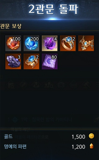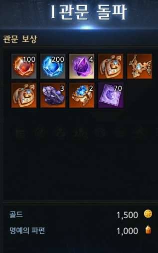 | 1 관문 | 1500 | 4 | 100 | 200 | 1000 |