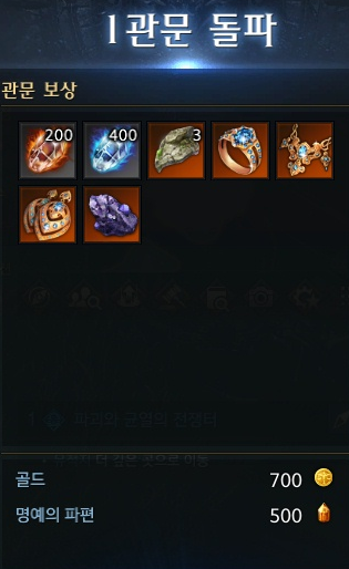| 1 관문 | 700 | 3 | 200 | 400 | 500 |