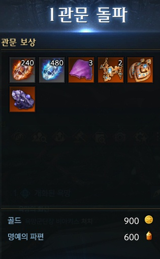 | 1 관문 | 900 | 3 | 240 | 480 | 600 |