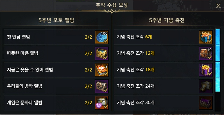 드디어 추억 앨범과 추억 수집 보상을 모두 완료하였습니다.