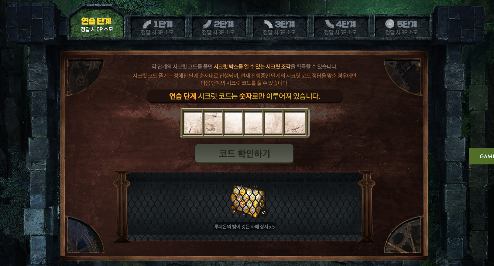 1단계 부터는 시크릿 포인트를 소모하여 진행 할 수 있습니다.