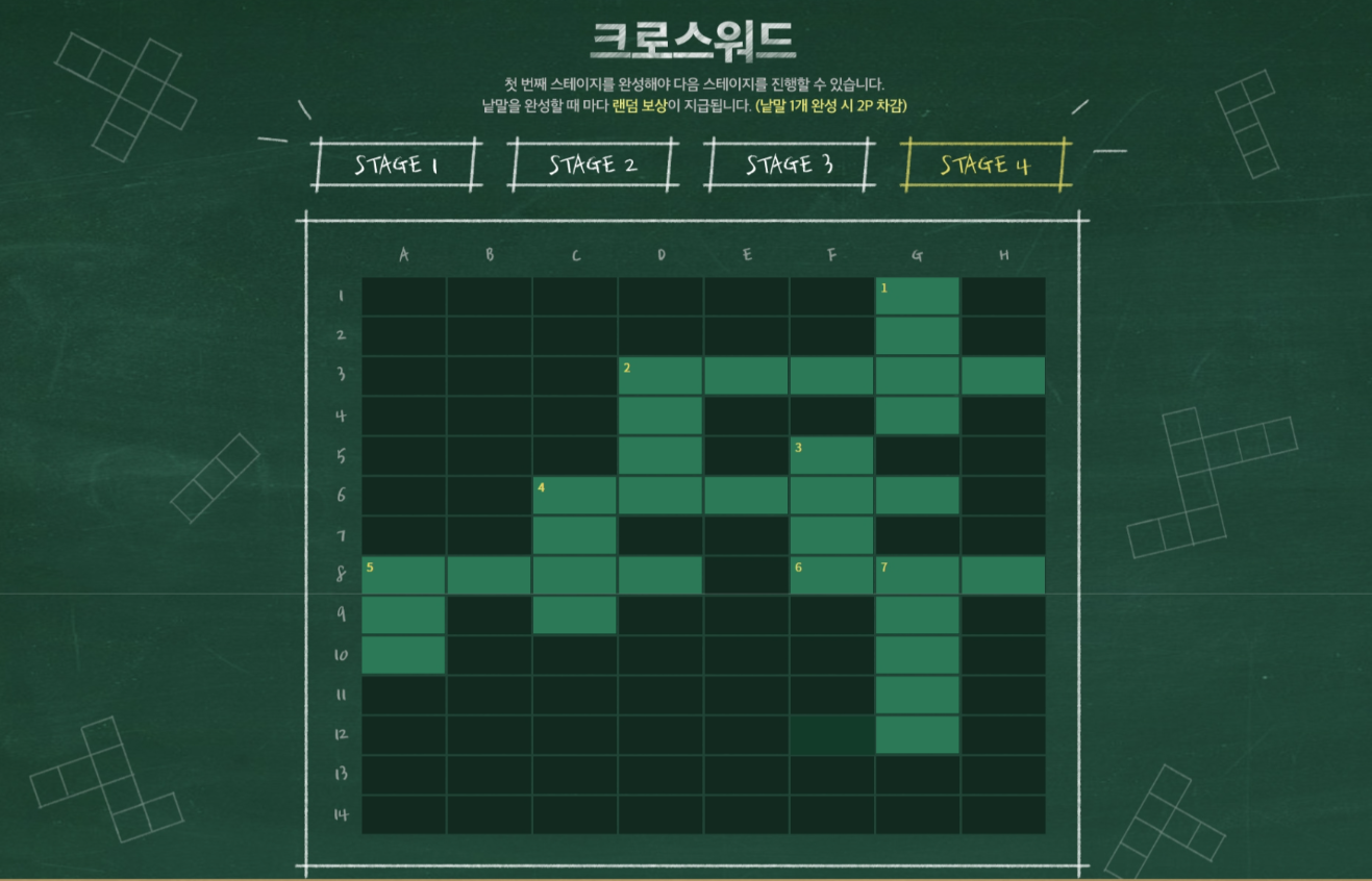 | [로스트아크] 크로스워드 이벤트 정답 (STAGE 1, 2, 3) (0) | 2023.11.12 |