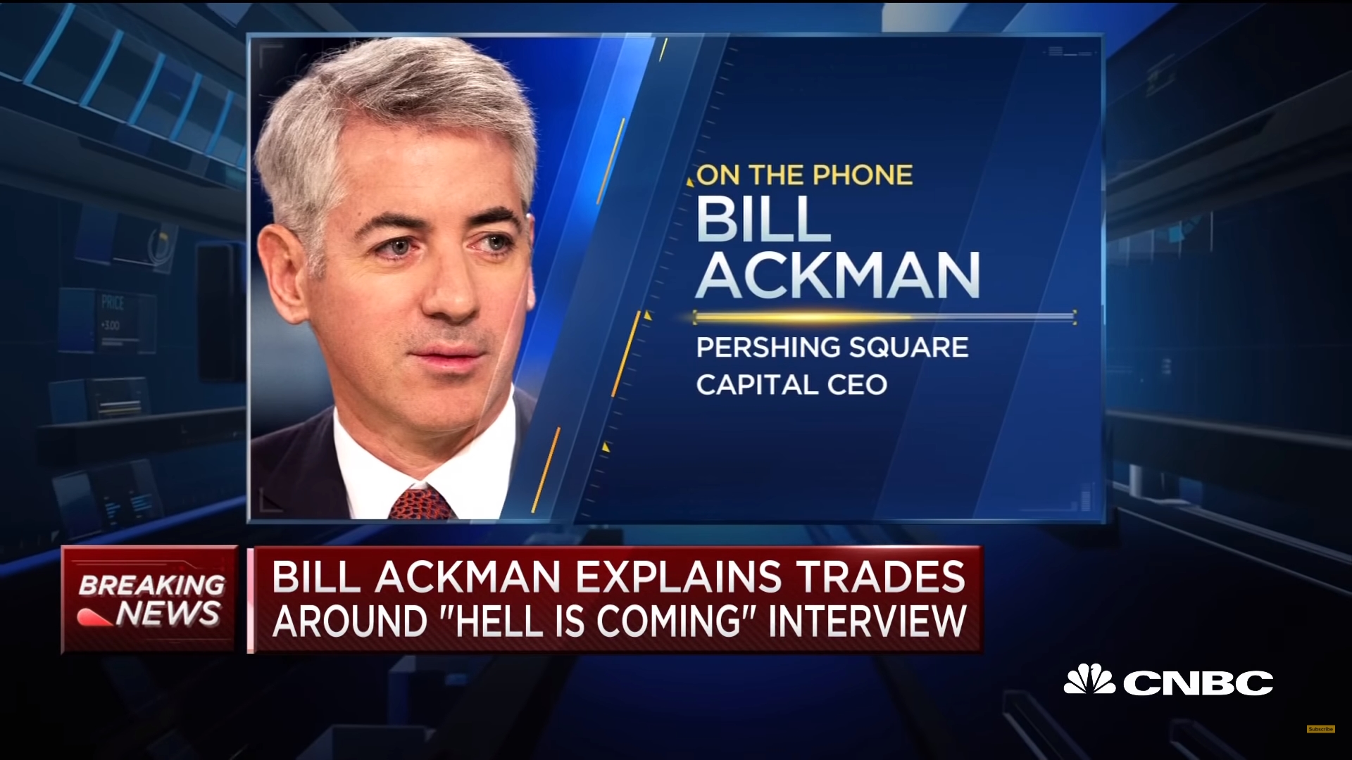 리틀 버핏으로도 불리기도 하는 빌 애크먼이 지난달 하락장에서 빅 쇼트로 3조에 달하는 수익을 달성하고 미국에서 호된 비판을 받고 있습니다. 왜냐하면 상황이 안 좋던 3월 18일 그는 CNBC에 나와 큰일 날 것만 같이 말하고선 자신은 진작 수익을 본 것입니다. 사람들은 이 연출을 쇼로 생각하고 자신의 영향력을 통해 수익을 얻었다고 생각하는 것입니다.
