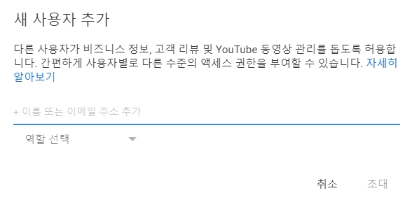 관리자로 등록을 원하는 상대의 유튜브 이메일 계정을 기입합니다. 이메일 기입시 언더바로 해당 계정이 뜨는데 이것을 눌러 선택하면 더욱 정확합니다.