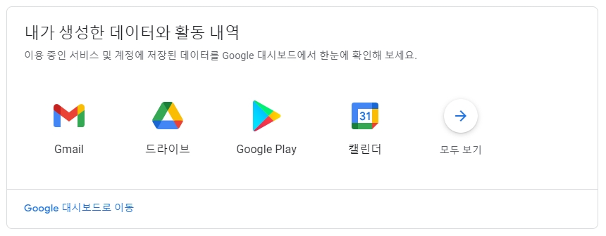 스크롤을 조금 내려 <내가 생성한 데이터와 활동 내역>에서 모두 보기를 클릭합니다.