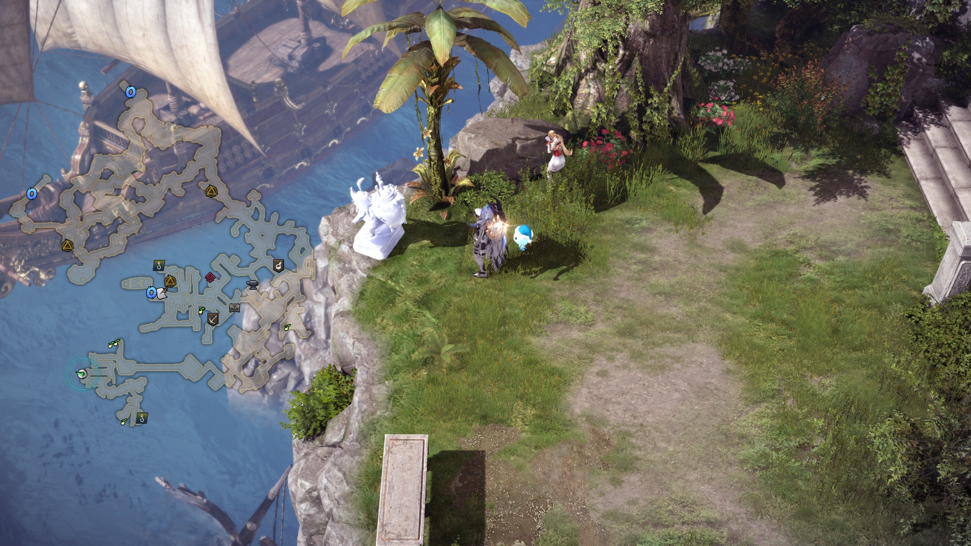 지도 7시 방향 폐허가 된 항구에서 두키 동상을 찾을 수 있는데요. 지도를 보유한 상태에서 이 동상에 상호 작용을 하면 오류섬 [tip.name.보물지도_301] 퀘스트를 시작할 수 있습니다.
