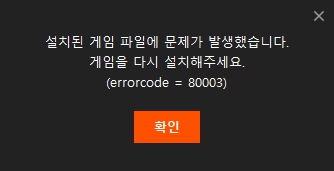 에러 80003은 설치 파일 누락으로 인해 발생하는데요. 와이파이로 무선 인터넷을 사용하면서 패킷 손실로 설치 파일이 누락 될 수도 있고, 계정이 변경되면서 로그인 될 때 소규모 패치 등이 일어나면서 설치 파일 누락이 발생하는 것으로 보입니다.