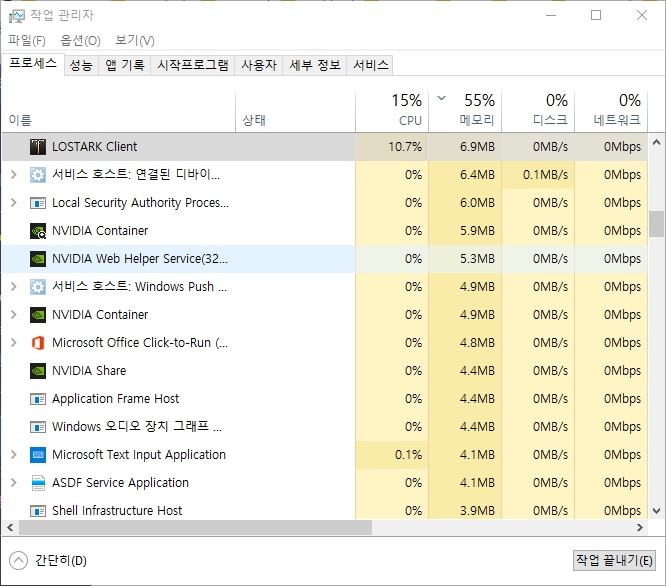 이 때, Ctrl + Alt + Del키를 눌러 작업관리자 모드로 들어갑니다.