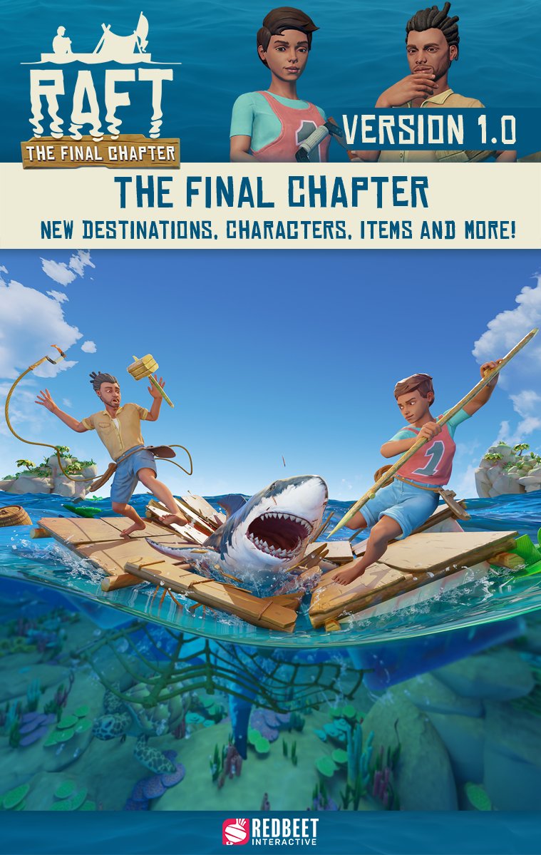 It is finally here. It is our most ambitious update ever. It is our BIGGEST update ever. There are new destinations, new enemies, more items, voice acting, new characters, trading and so much more. It is the culmination of more than five years of development and the grand finale to the Raft story line. It is The Final Chapter, and it is ready to be played.